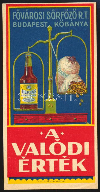 Fővárosi Sörfőző Rt. Budapest Kőbánya számolócédula