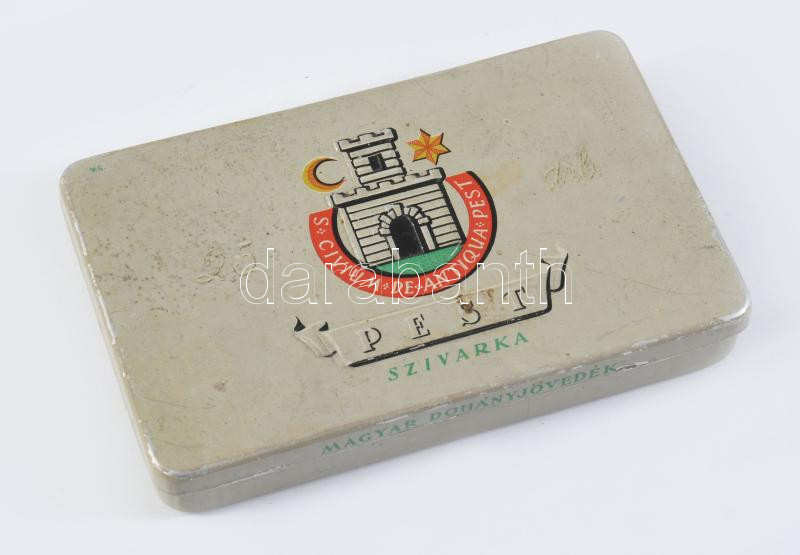 Magyar Dohányjövedék Pest szivarka fémdoboz, 11x7x1,5 cm