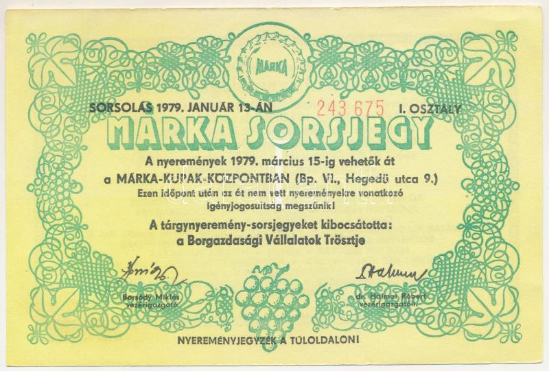 1979. "Márka Sorsjegy" Borgazdasági Vállalatok Trösztjének sorsjátéka "I. osztály" T:AU