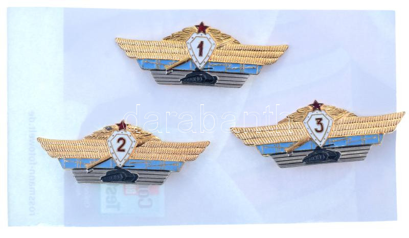 Szovjetunió 1970 k. "Harckocsizó" 1.- 2.- és 3. osztályú aranyozott, zománcozott fém jelvény (3xklf) T:AU
