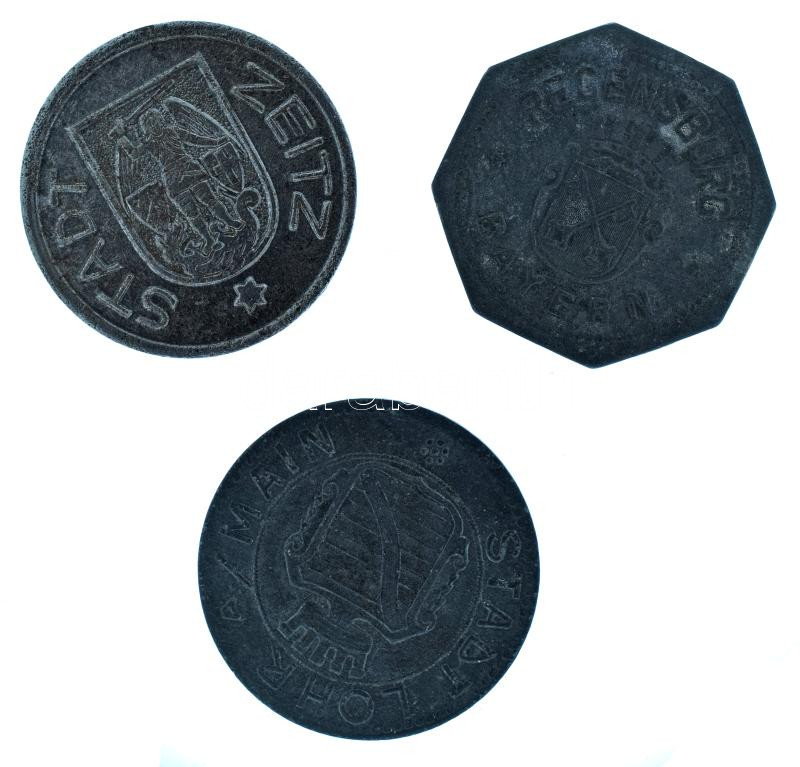 German Empire / Weimar Republic / Zeitz, Lohr am Main, Regensburg 1919. 10 Pfennig Fe (3xdiff) necessity money (notgeld) C:XF,VF small corrosion