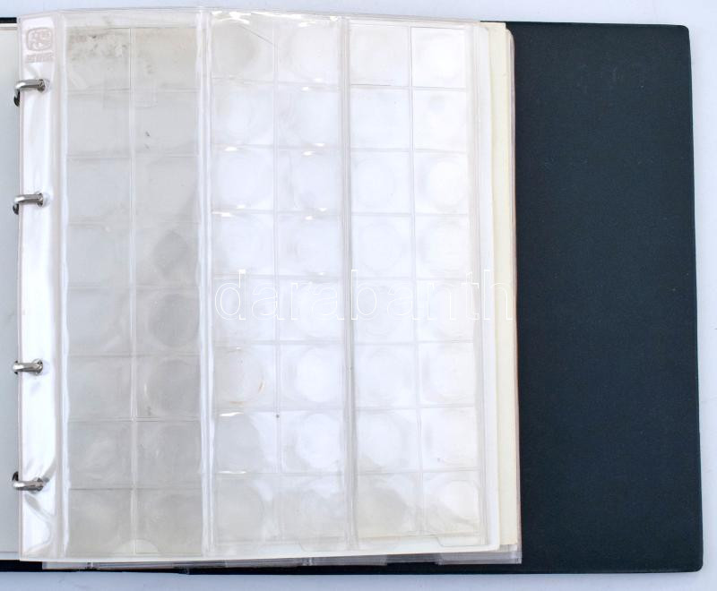 "NUMIS Leuchtturm" zöld műbőr négygyűrűs berakó album, összesen 7db, újszerű és használt berakólappal (216db férőhellyel) klf méretű érmék számára. Újszerű állapotban