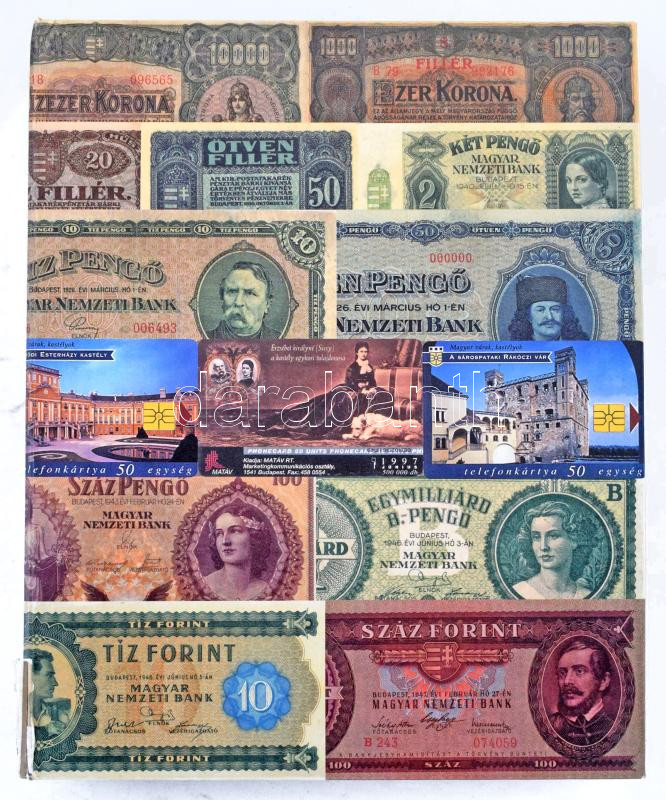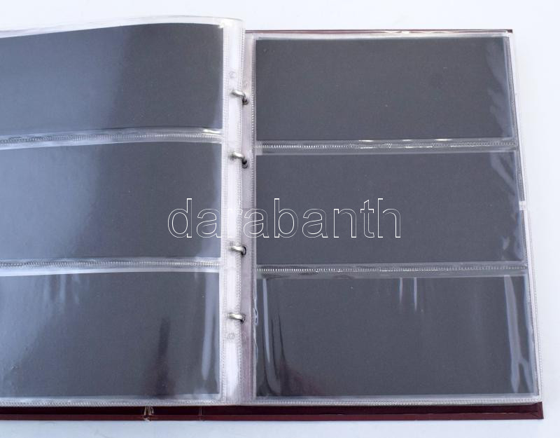 Néggyűrűs bankjegyberakó huszonkilenc kettes és tizenhét hármas osztású berakólappal. A lapok közel újszerű, a berakó használt állapotban