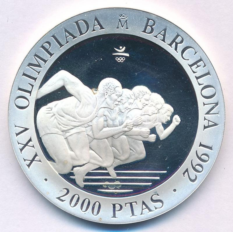 Spanyolország 1992. 2000P Ag "Nyári Olimpia 1992 Barcelona - Futás" T:PP kis patina, karc Spain 1992. 2000 Pesetas Ag "1992 Summer Olympics, Barcelona - Sprint" C:PP small patina, scratch Krause KM#913