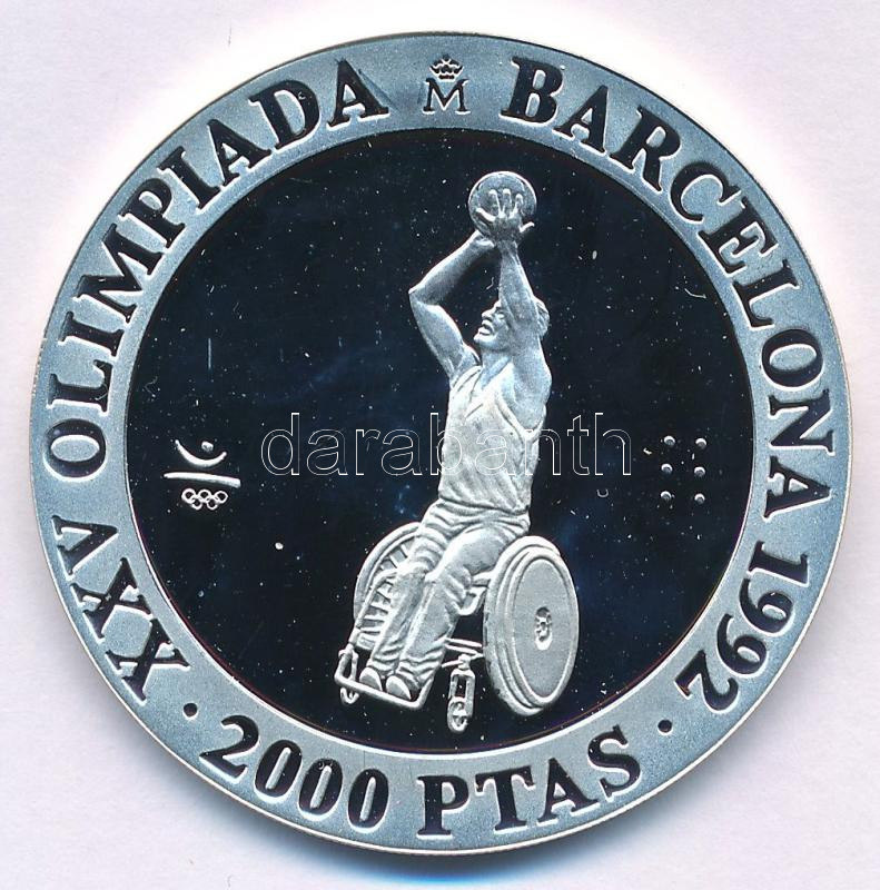 Spanyolország 1992. 2000P Ag "Nyári Olimpia 1992 Barcelona - Kerekesszékes kosárlabda" T:PP Spain 1992. 2000 Pesetas Ag "1992 Summer Olympics, Barcelona - Wheelchair basketball" C:PP Krause KM#912
