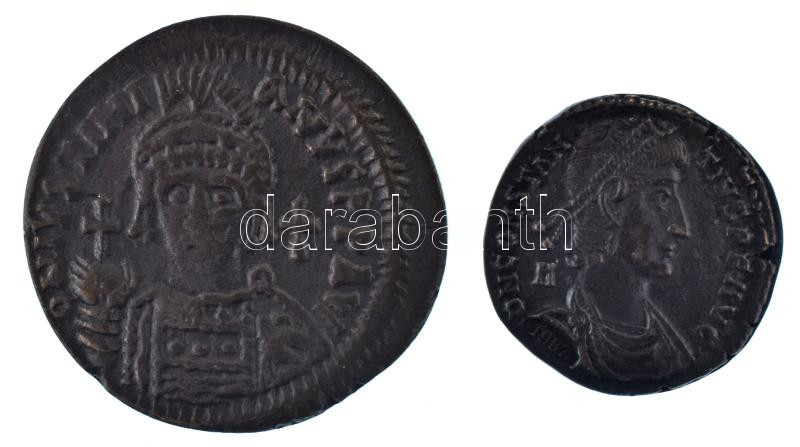 Római Birodalom 337-361 / II. Constantius "IN HOC SIGNO VICTOR ERIS" Follis bronz replika 1987-es évszámmal + Bizánci Birodalom Follis bronz replika kapszulában, 1988-as évszámmal T:UNC