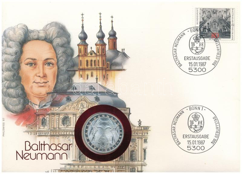 Federal Republic Germany 1978F 5 Mark Ag "Balthasar Neumann halálának 225. évfordulója" in coin envelope with stamps and cancellation C:UNC patina