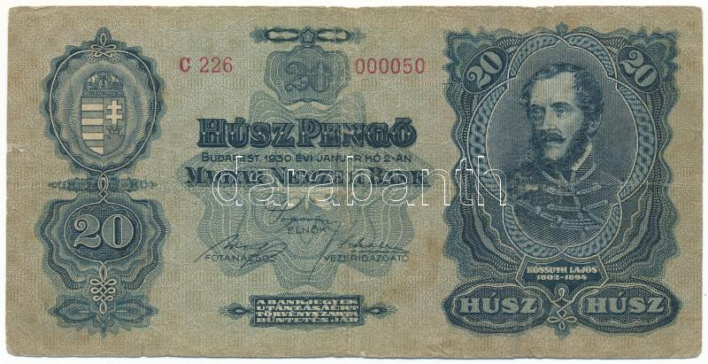 1930. 20P rendkívül alacsony, "C 226 000050" sorszámmal T:F,VG