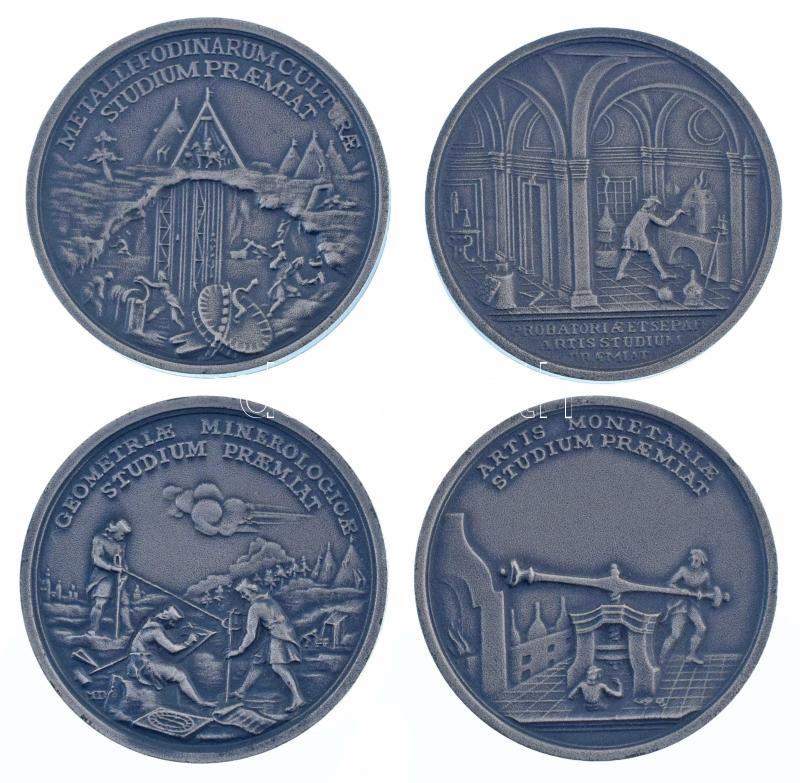 1960-1970 k. "Selmecbányai Bányászati Akadémia tanulmányi éremsorozat" Matthäus Donner emlékérméinek utánveretei, ezüstpatinázott bronz 4db-os jutalomérem sorozat díszdobozban (45mm) T:AU / Hungary ~1960-1970 "Banská Stiavnica Academic Study Medal Series" restrikes of Matthäus Donner medals, silver paitnated bronze commemorative medal set in case (45mm) C:AU