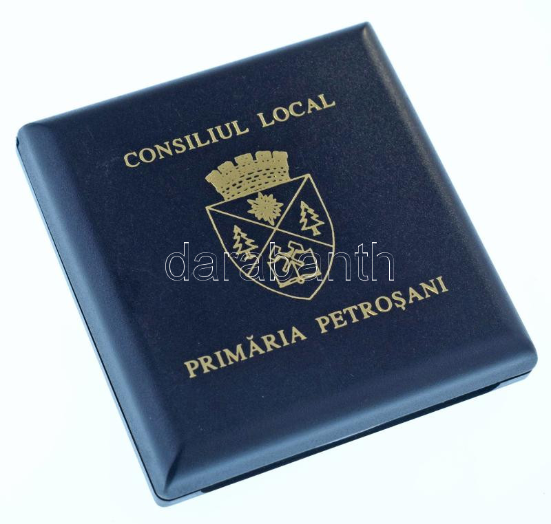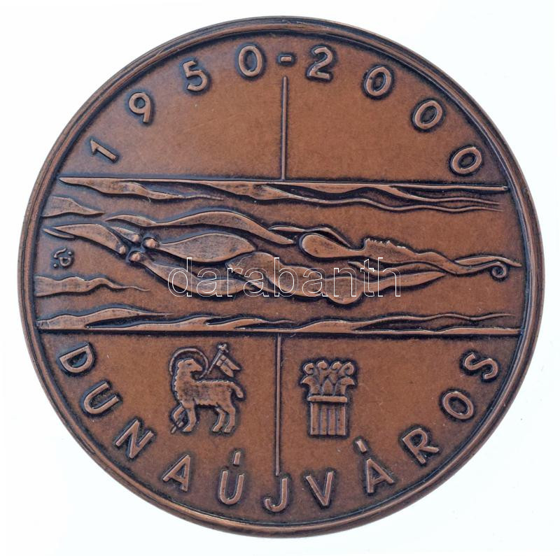 2000. "Dunaújváros 1950-2000" egyoldalas bronz emlékérem kapszulában (42,5mm) nem saját tokban, nem hozzá tartozó Románia DN "Petrosani" fém kitűzővel (16x24mm) T:UNC