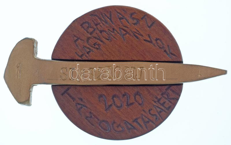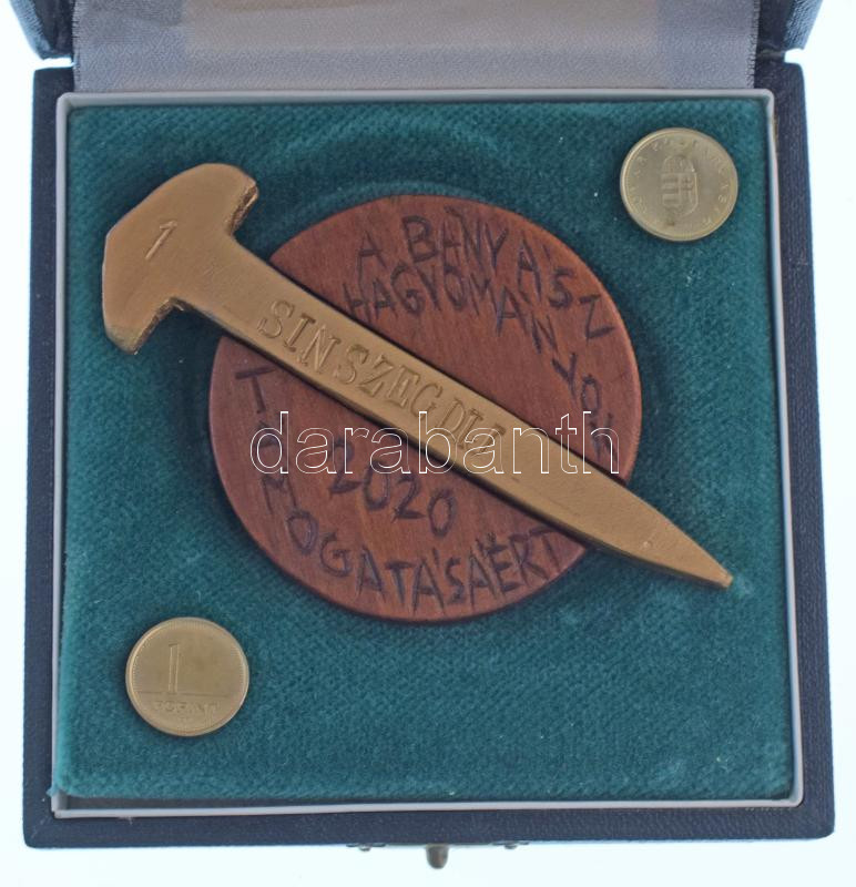 2020. "Sínszeg Díj / A bányászhagyományok támogatásáért / Csolnok - Jó szerencsét" öntött bronz sínszeg gravírozott "1" sorszámmal, fa emlékéremben (96x29mm, 59mm), eredeti tokban, a tokban rögzítve 2db 1Ft-os T:AU