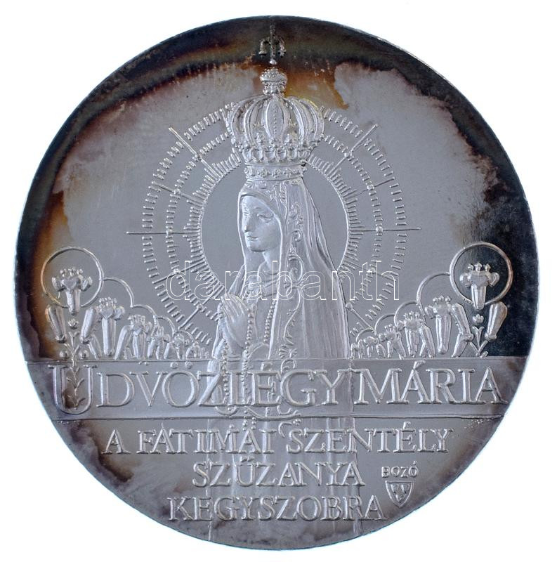 Bozó Gyula (1913-2004) 1994. "Nemzeti Engesztelő Zarándoklat / Fatimai szentély Szűzanya szobra" ezüstözött fém emlékérem T:PP ködösödés, patina
