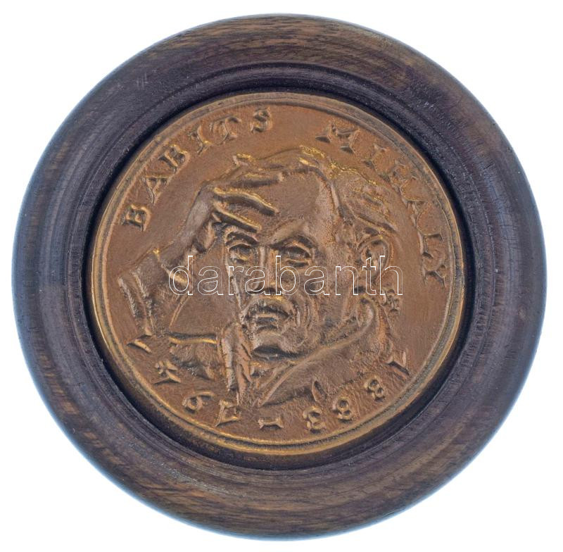 Farkas Pál (1947-) DN "Babits Mihály" öntött bronz emlékérem (65mm) fa posztamensen (94mm) T:XF