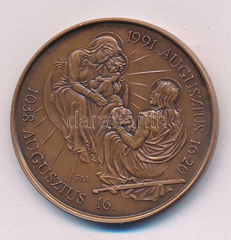 Fritz Mihály (1947-) 1991. "II. János Pál Pápa Budapesten" kétoldalas bronz emlékérem (42,5mm) kapszulában T:UNC,AU