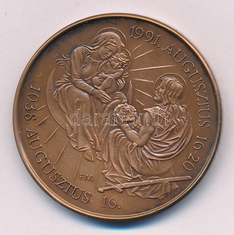 Fritz Mihály (1947-) 1991. "II. János Pál Pápa Máriapócson" kétoldalas bronz emlékérem (42,5mm) kapszulában T:UNC,AU