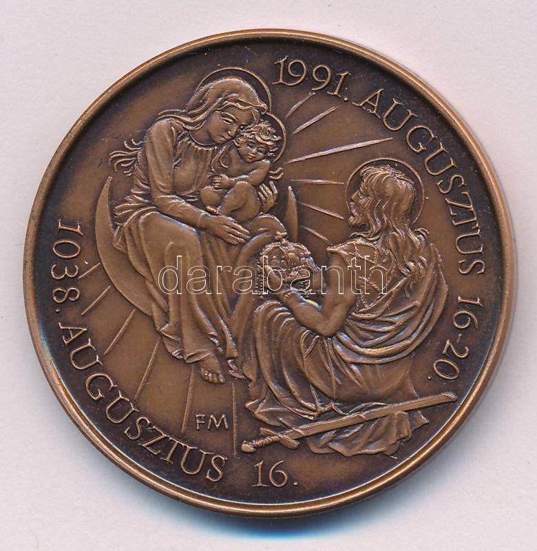 Fritz Mihály (1947-) 1991. "II. János Pál Pápa Szombathelyen" kétoldalas bronz emlékérem (42,5mm) kapszulában T:UNC,AU