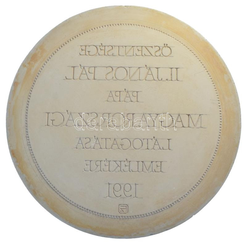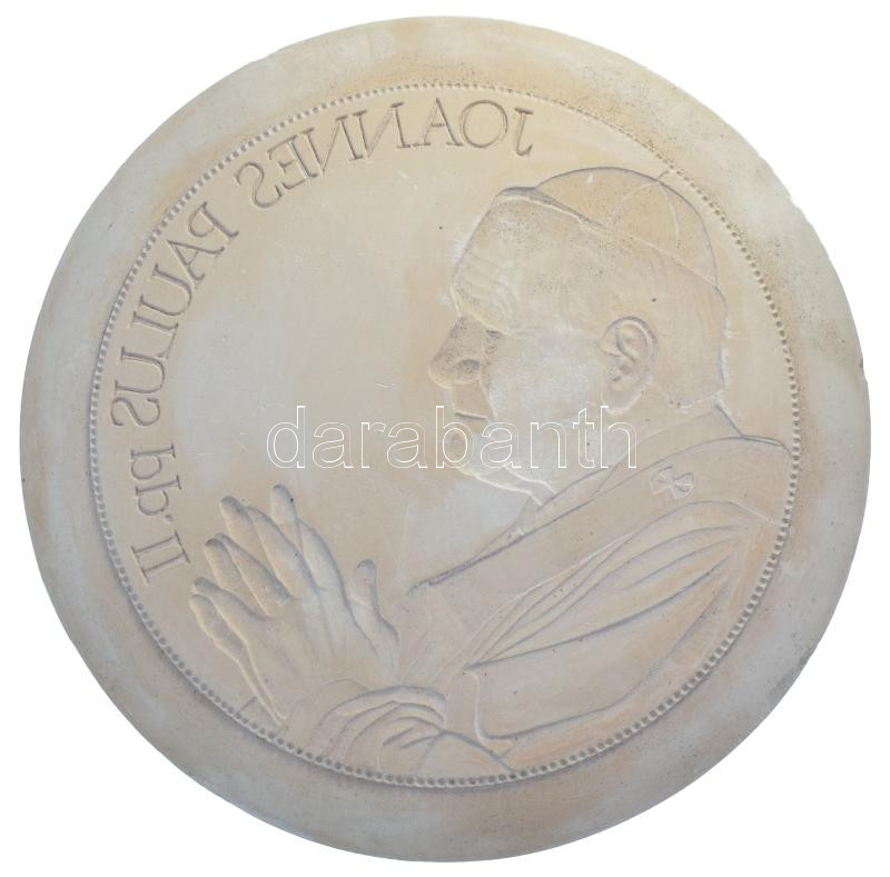 Fülöp Zoltán (1951-2004) 1991. "Joannes Paulus pp. II / Őszentsége II. János Pál pápa magyarországi látogatása emlékére" emlékérem gipsz előlapi és hátlapi NEGATÍV nagyminta (160mm) T:AU