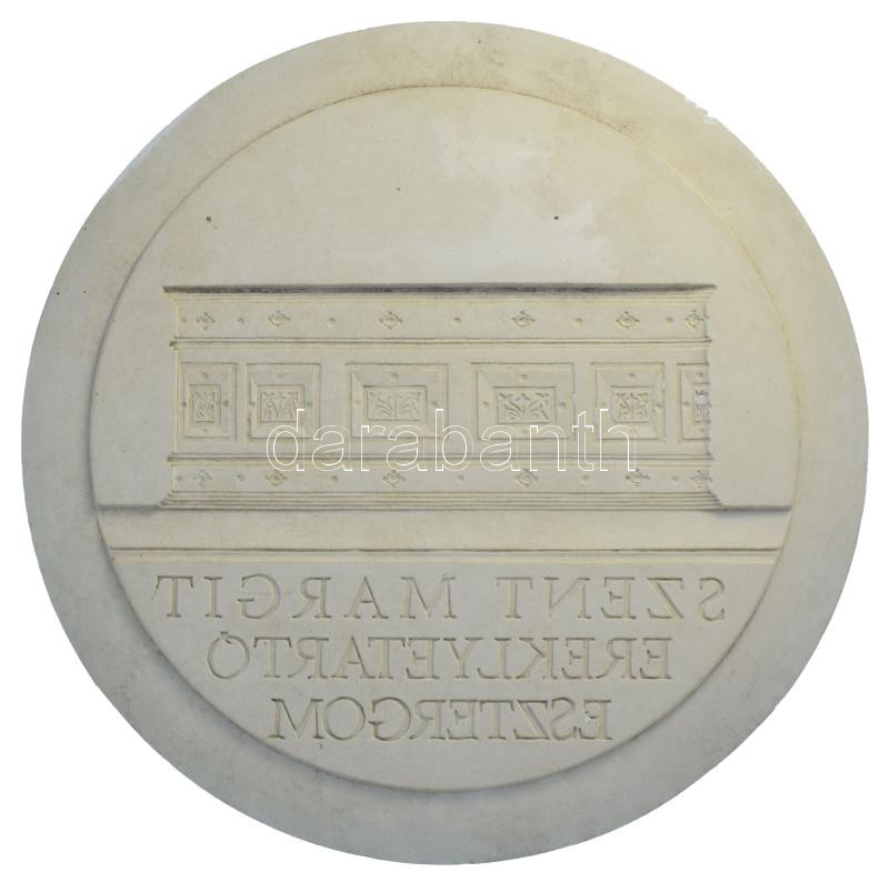 Fülöp Zoltán (1951-2004) 1994. "Szent Margit ereklyetartó Esztergom / Margit imái vezekelve szállnak" emlékérem gipsz előlapi és hátlapi NEGATÍV nagyminta (160mm) T:AU