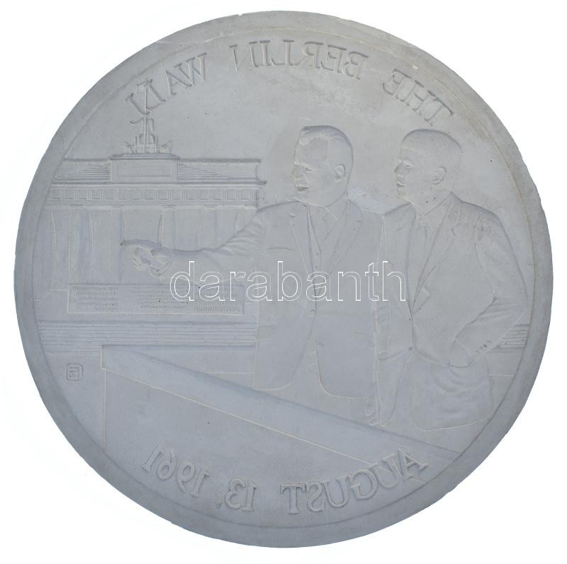 Fülöp Zoltán (1951-2004) DN "Az Egyesült Államok 35. elnöke / A berlini fal, 1961. augusztus 13." emlékérem gipsz előlapi NEGATÍV nagyminta (197mm) T:AU