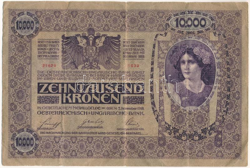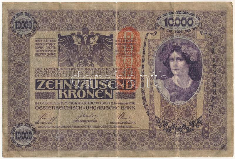 Ausztria 1918. 10.000K "1033 21629" "DEUTSCHÖSTERREICH" felülbélyegzéssel T:VG szakadások