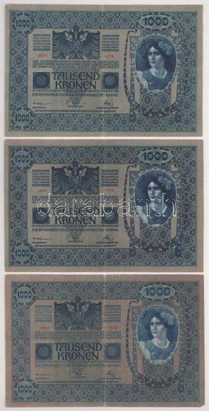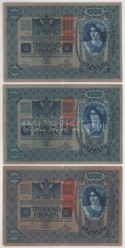 Ausztria 1919 (1902) 1000K, függőleges "DEUTSCHÖSTERREICH" felülbélyegzéssel, mindkét oldal német (3x) T:F,VG