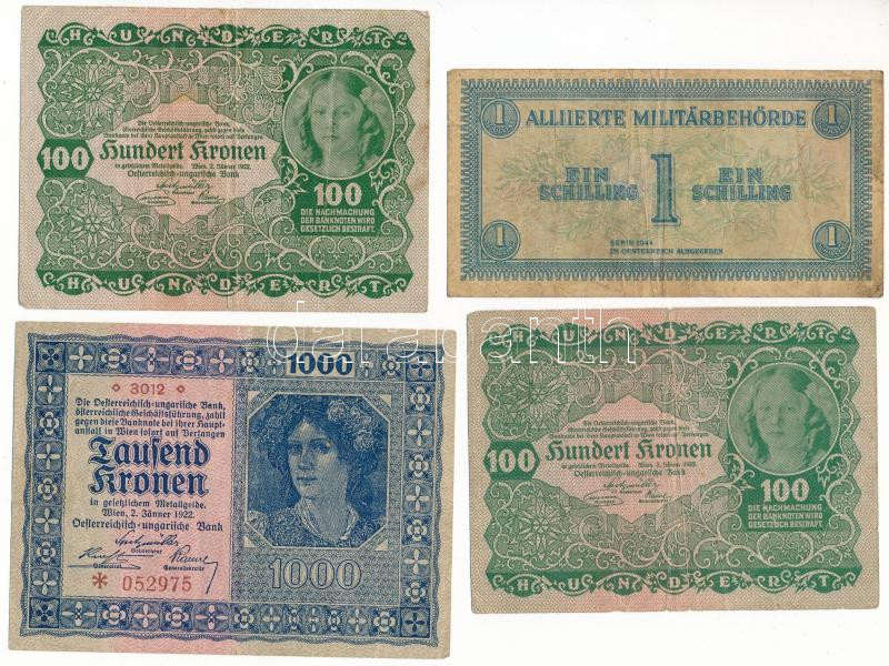 Ausztria 1922. 100K (2x) + 1000K + Ausztria / Szövetséges megszállás 1944. 1Sch T:F-VG