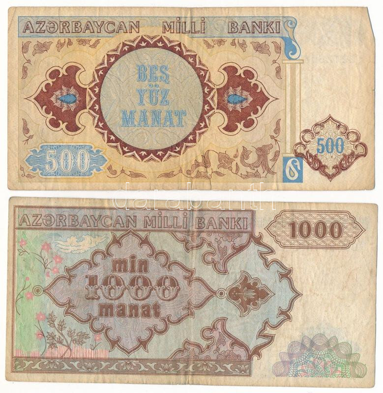 Azerbaijan ND (1993) 500 Manat + ND (1993) 1000 Manat C:F