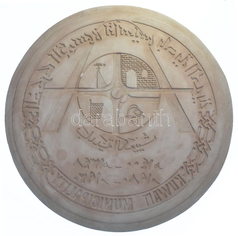 Kuwait 1980. "Fifty years old Kuwait" obverse and reverse NEGATIVE large plaster sample (213mm) C:AU