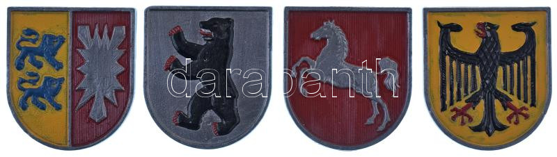 Németország DN a német címert ábrázoló, festett fém plakett, illetve 3xklf tartományi címert ábrázoló, festett fém plakett: Berlin, Alsó-Szászország, Schleswig-Holstein (49x55mm) T:AU,XF