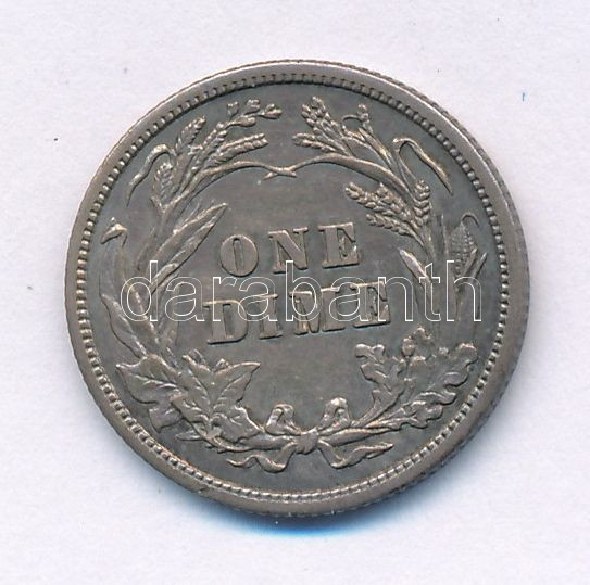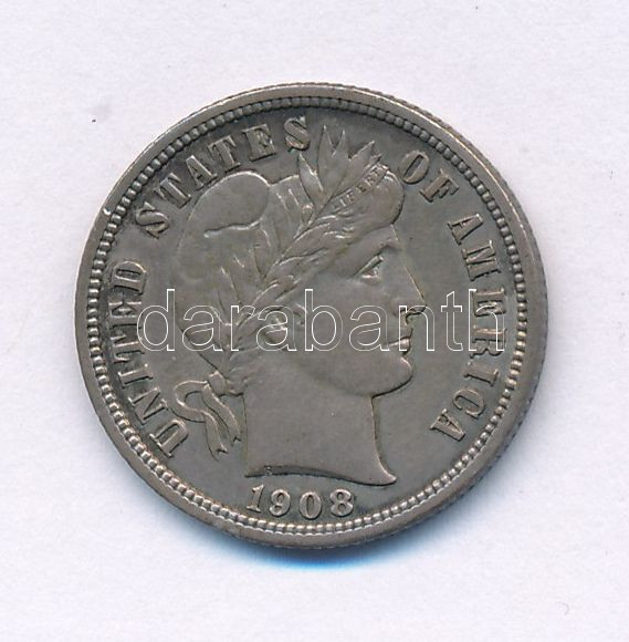 USA 1908. 1 Dime (10 Cents) Ag "Barber Dime" C:XF patina