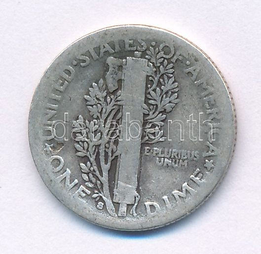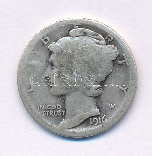 Amerikai Egyesült Államok 1916. 10c Ag "Mercury" T:VF patina