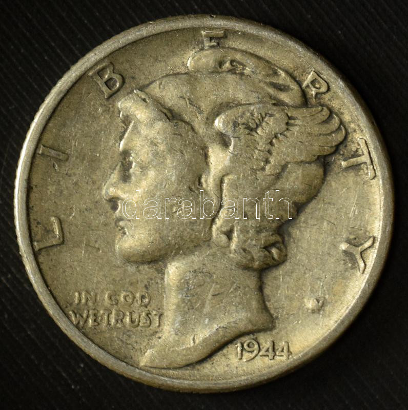 USA 1944. 1 Dime (10 Cents) Ag "Mercury" C:XF