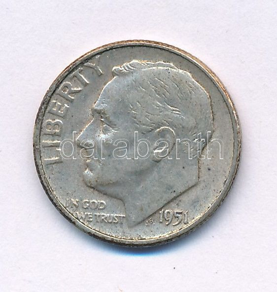 USA 1951. 1 Dime (10 Cents) Ag "Roosevelt" C:VF patina