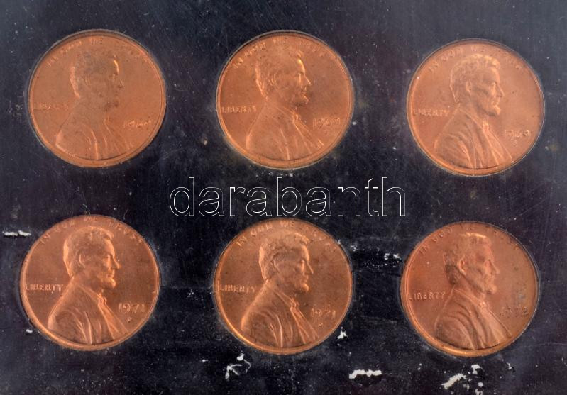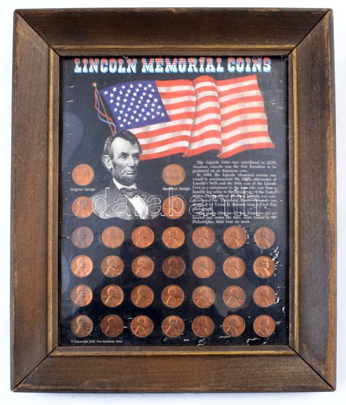 Amerikai Egyesült Államok 1958 k-1972. 1c bronz "Lincoln" (32xklf) "Lincoln Memorial Coins" fa keretben T:UNC-XF patina