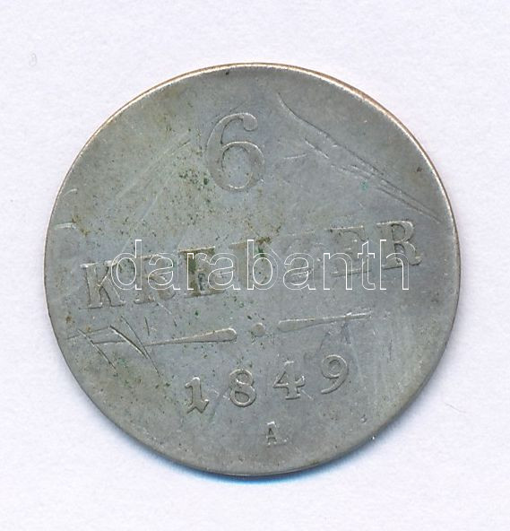 Austria 1849A 6 Kreuzer Ag C:F patina, scratch