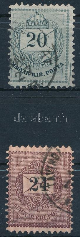 1881-1889 20kr + 24kr sztereotip bélyeg keskenyre fogazva