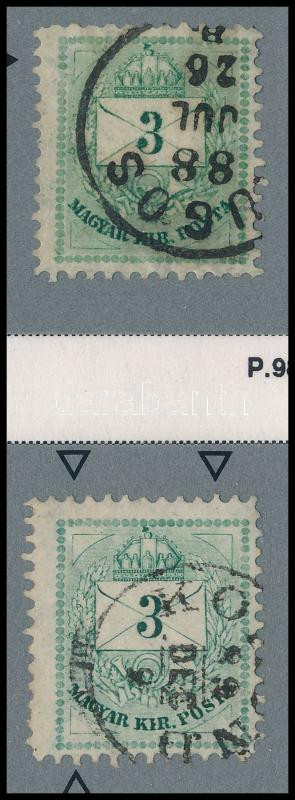1881 2 db 3kr klf javításokkal (ex Orbán, Sebestyén aranyérmes kiállítási anyagból)
