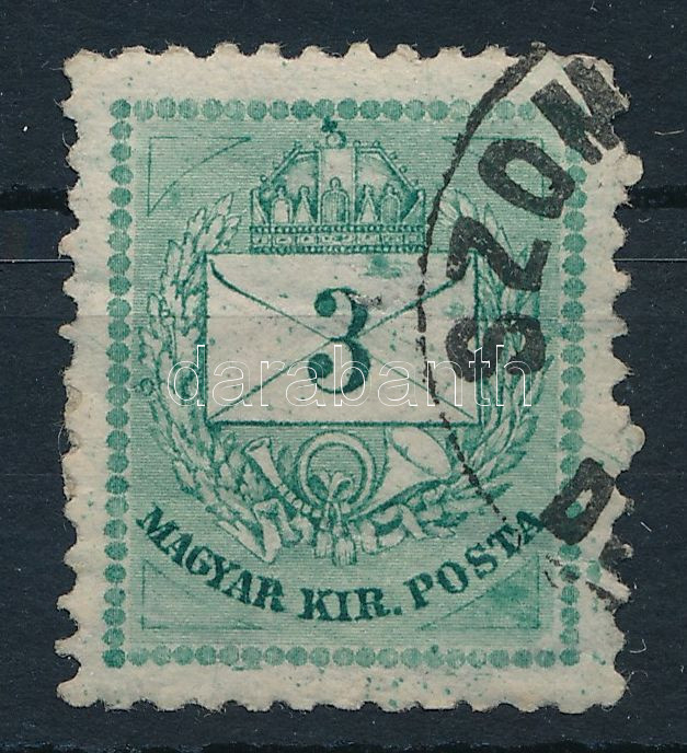 1881 3kr a számjegy felett folttal + a jobb alsó háromszög kontárjavítással