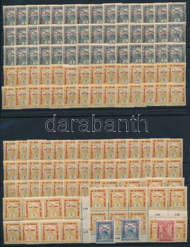 1915 Hadisegély II. 142 db bélyeg 2 stecklapon
