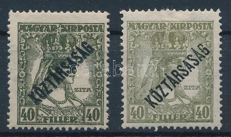 1918 Köztársaság Károly-Zita 40f erősen túlfestékezett nyomat + "szakadt gyöngy" támpéldánnyal
