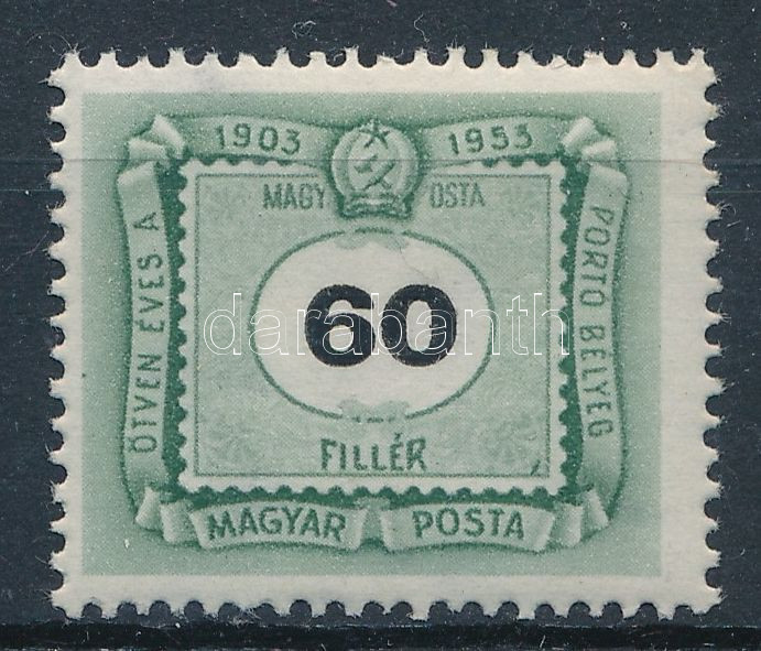 1953 50 éves a magyar portóbélyeg 60f számvízjellel