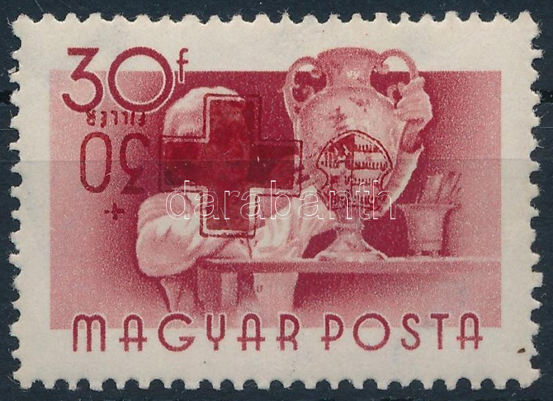 1957 Vöröskereszt (IV.) 30f fordított felülnyomattal, luxus minőségben! A modern magyar filatélia nyomási különlegessége! (150.000) / Mi 1483 with inverted overprint in luxury condition.