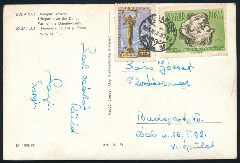 1959 Érdekes helyi képeslap magyar és szovjet bélyegekkel vegyesen bérmentesítve