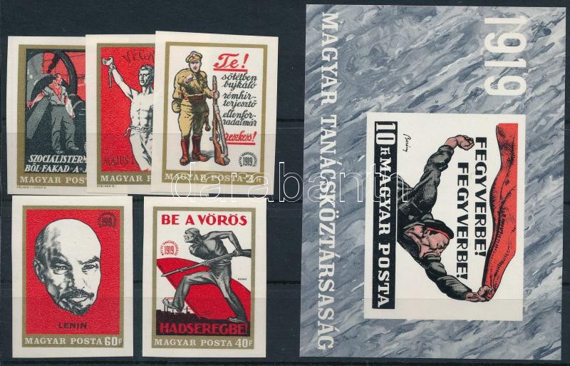 1969 Magyar Tanácsköztársaság V. vágott sor és vágott blokk (ujjlenyomatok / fingerprints)