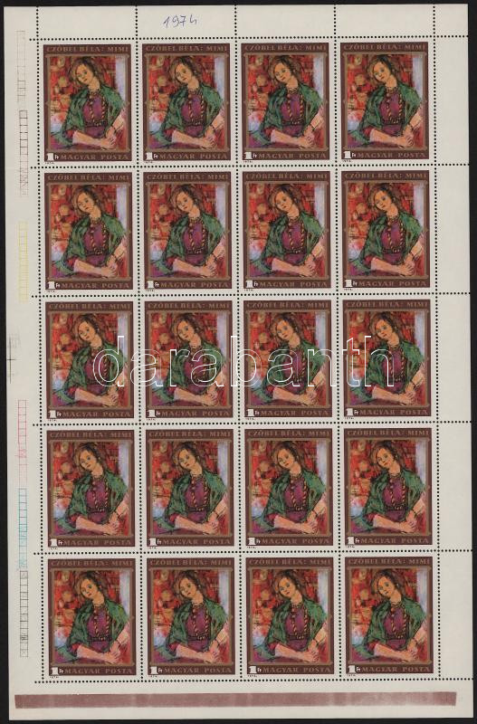 1974 Czóbel Béla hajtott teljes ív (tollal írt évszám az ívszélen, betapadás az ívszélen / damaged margin)