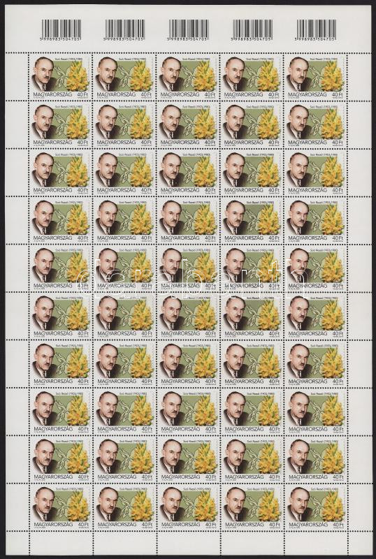2003 A visszavont Soó Rezső bélyeg hajtott teljes ívben, az 5 vonalkóddal