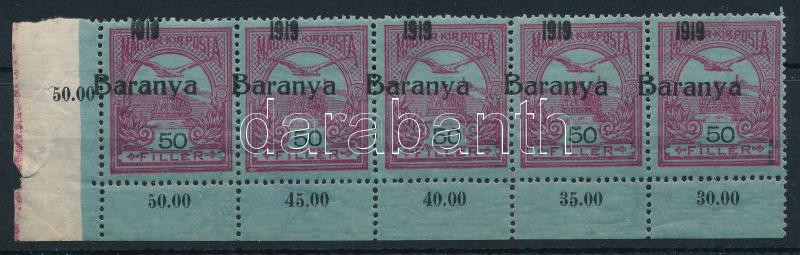 Baranya 1919 Turul 50f ívsarki ötöscsík elcsúszott felülnyomással, Bodor vizsgálójellel