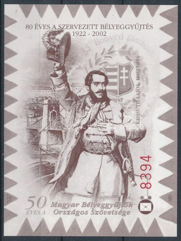 2002 Kossuth Lajos emlékÃv fogazott és vágott, mindkettÅ‘ a Bélyegvilág elÅ‘fizetÅ‘inek hátoldali felirattal. A vágott változat felirattal nem szerepel a katalógusban! VélhetÅ‘en 1-2 példány létezik belÅ‘le. Ritkaság!