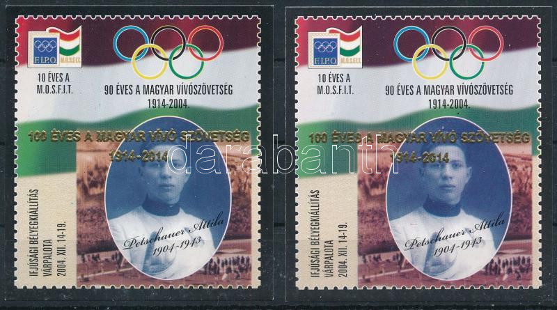 2014 100 éves a Magyar Vívószövetség 2 db felülnyomott emlékív arany dombornyomással