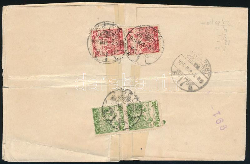 1925 Ajánlott levél 2 x 2000K és 500 K + hátoldali 2 x 300K és 2 x 200K bérmentesítéssel, "PÉCS" - Budapest (hajtott / folded)